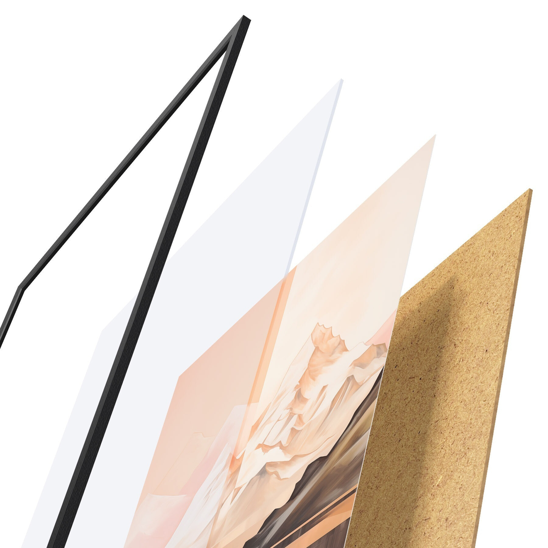 Plakat składa się z ramy, pleksi, wydrukowanego obrazu i podkładu z płyty wiórowej. Plakat można natychmiast zawiesić na ścianie dzięki uchwytom z tyłu.