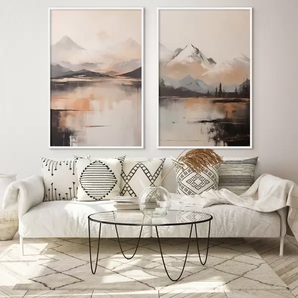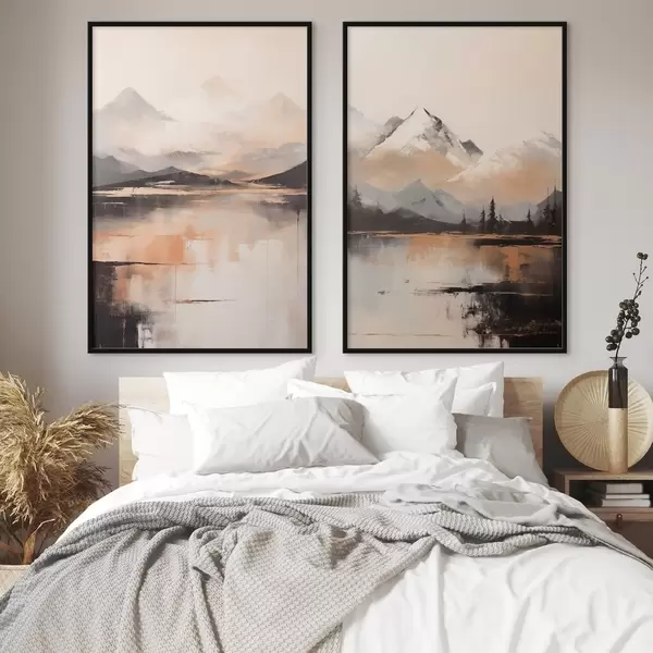 Poster Obraz przedstawiający krajobraz z teksturą gór i jeziora Nr d00831