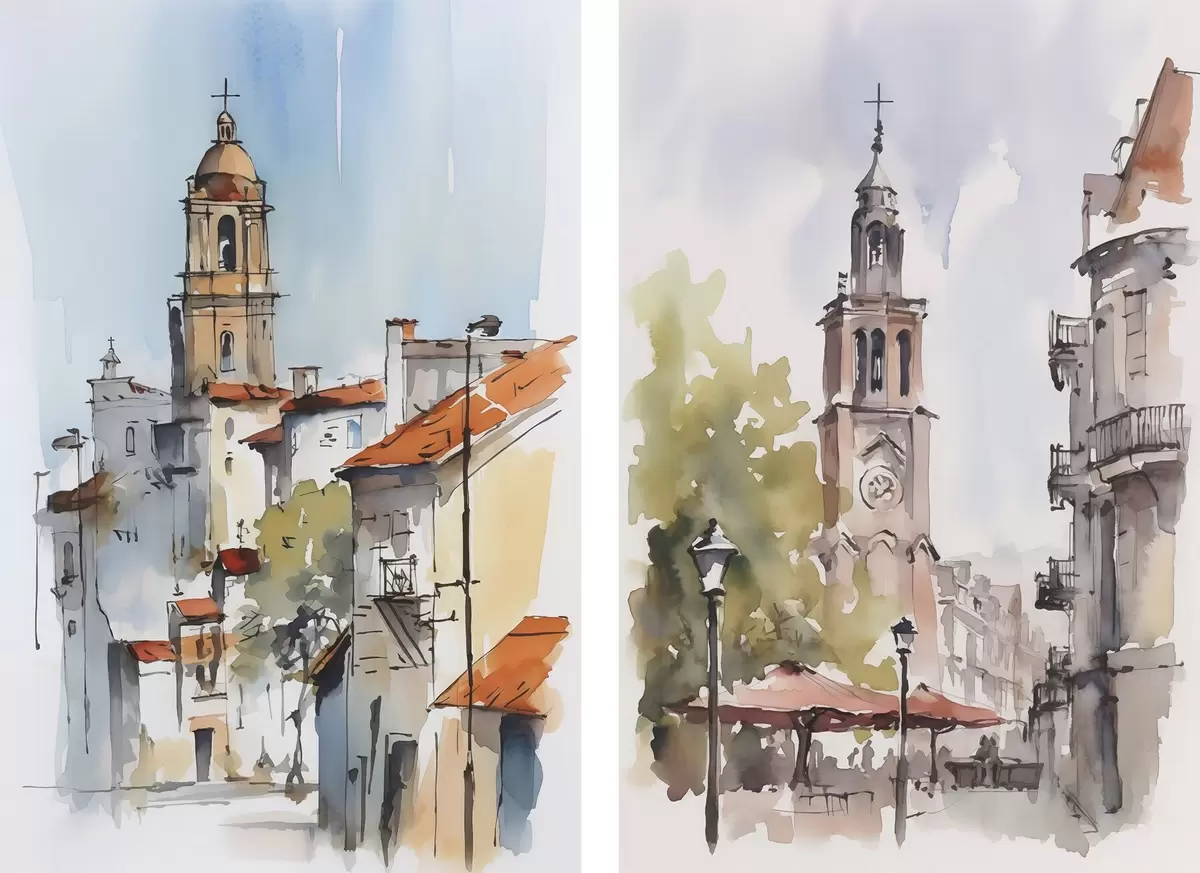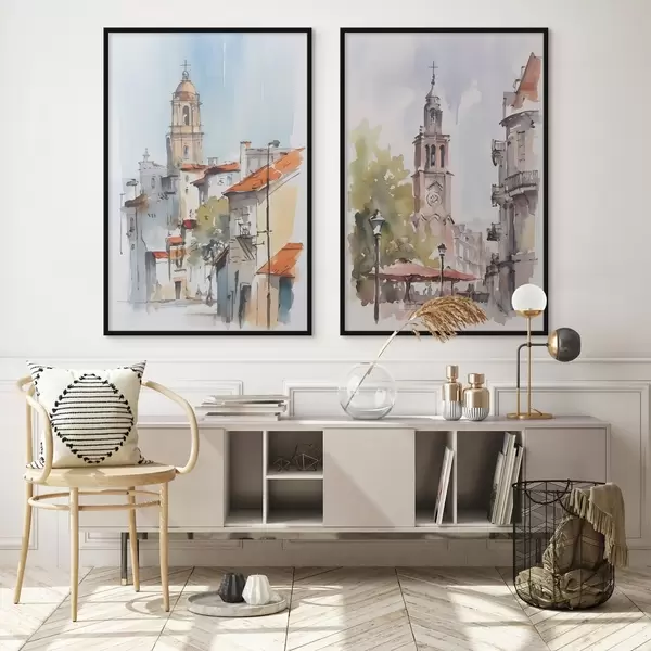 Poster Akwarela imitująca pejzaż miejski Nr d00832