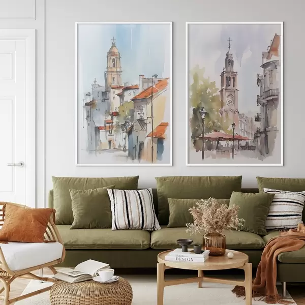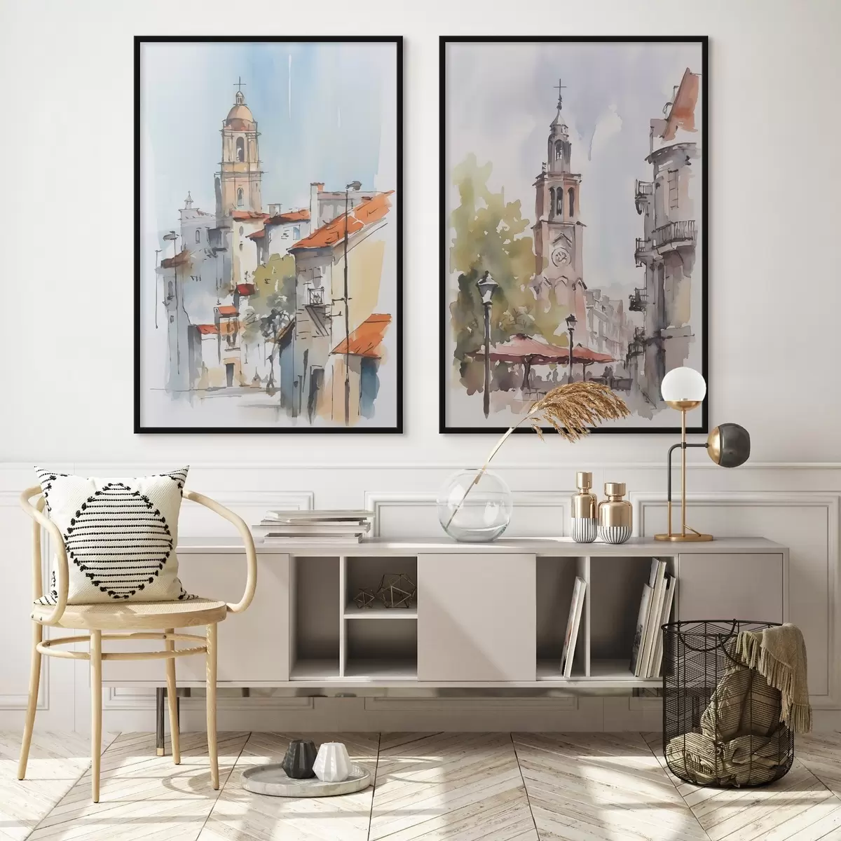 Plakat Akwarela imitująca pejzaż miejski d00832