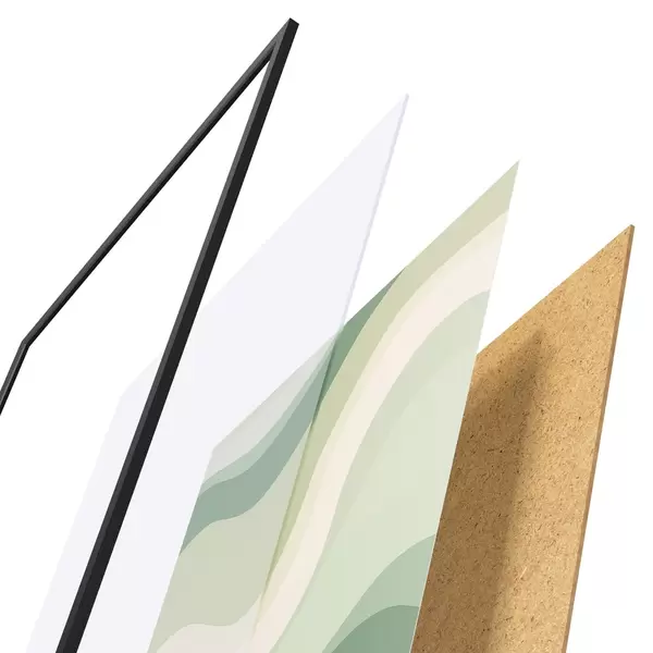 Plakat składa się z ramy, pleksi, wydrukowanego obrazu i podkładu z płyty wiórowej. Plakat można natychmiast zawiesić na ścianie dzięki uchwytom z tyłu.