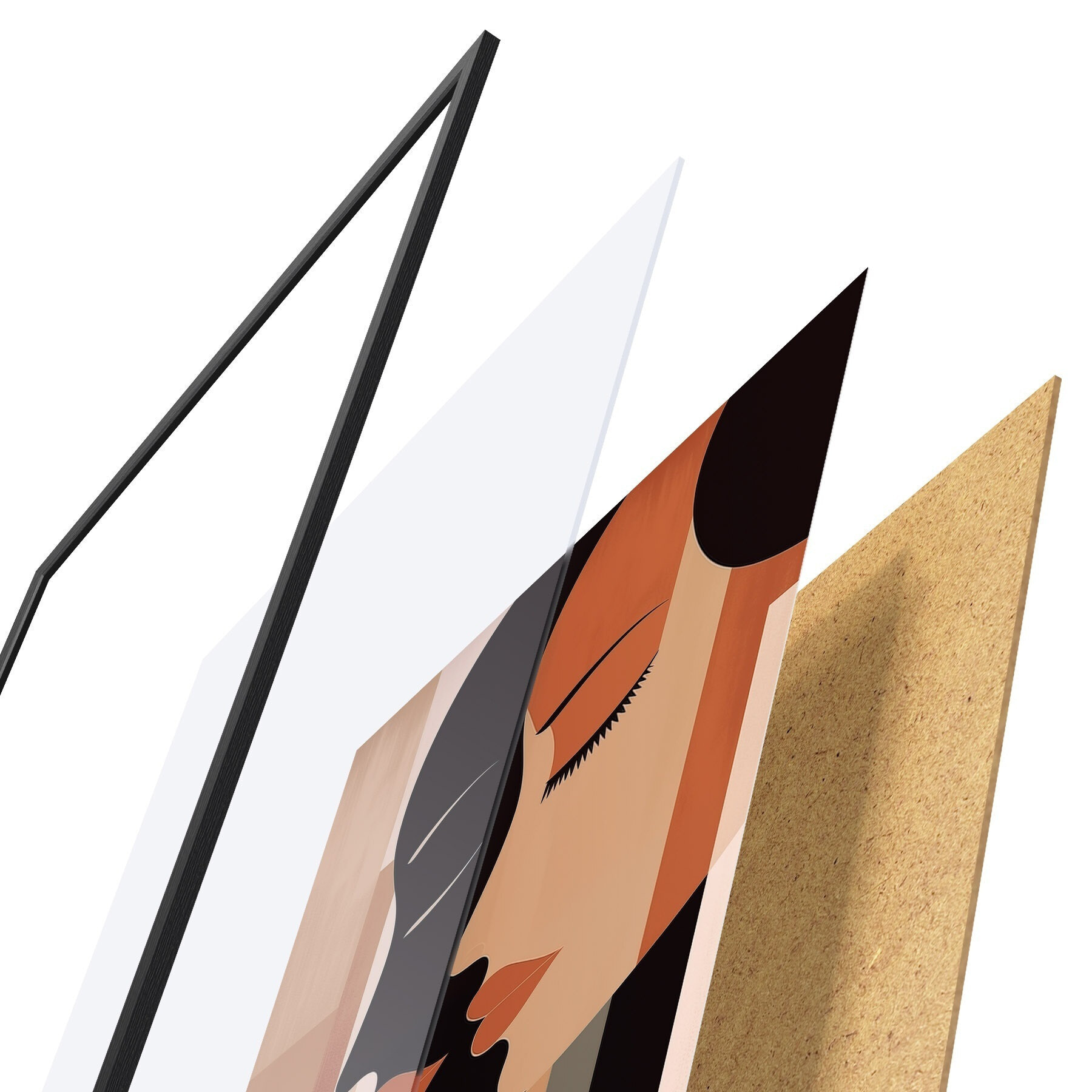 Plakat składa się z ramy, pleksi, wydrukowanego obrazu i podkładu z płyty wiórowej. Plakat można natychmiast zawiesić na ścianie dzięki uchwytom z tyłu.