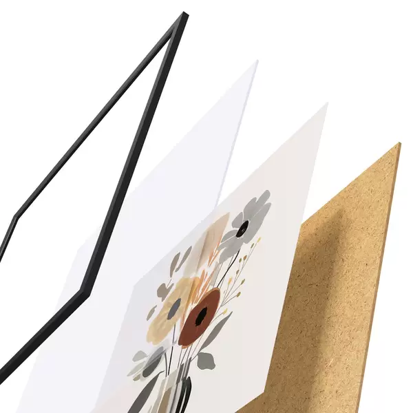 Plakat składa się z ramy, pleksi, wydrukowanego obrazu i podkładu z płyty wiórowej. Plakat można natychmiast zawiesić na ścianie dzięki uchwytom z tyłu.