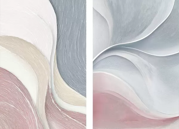 Plakat Abstrakcyjne fale w odcieniach różowo-beżowo-niebieskich d00874