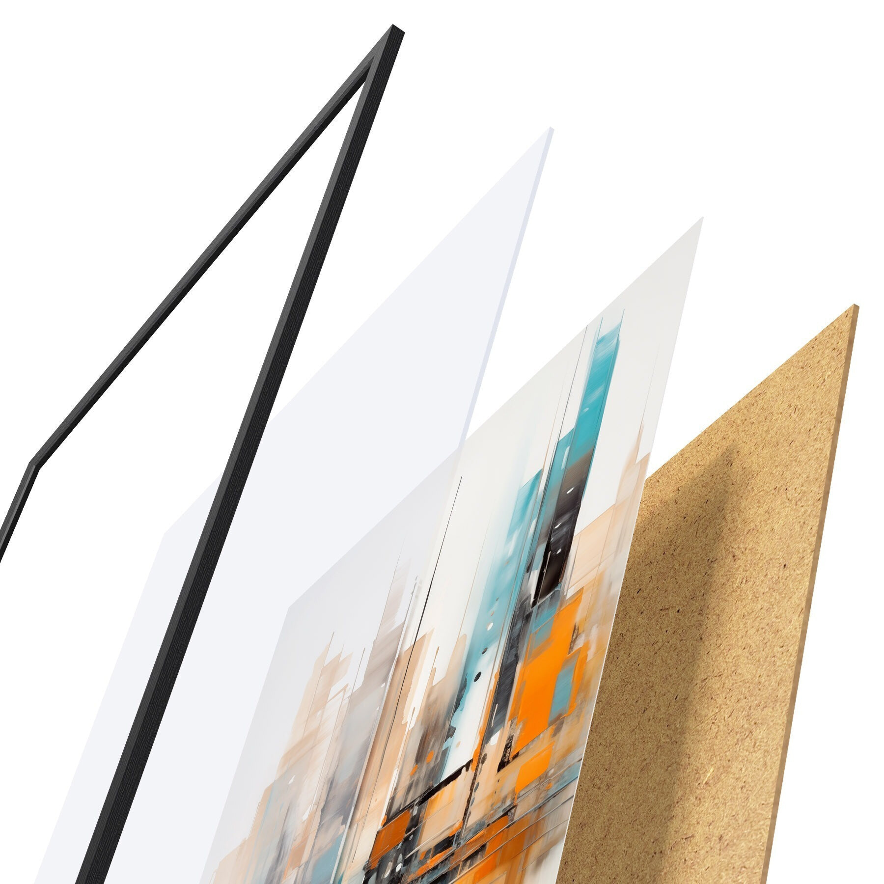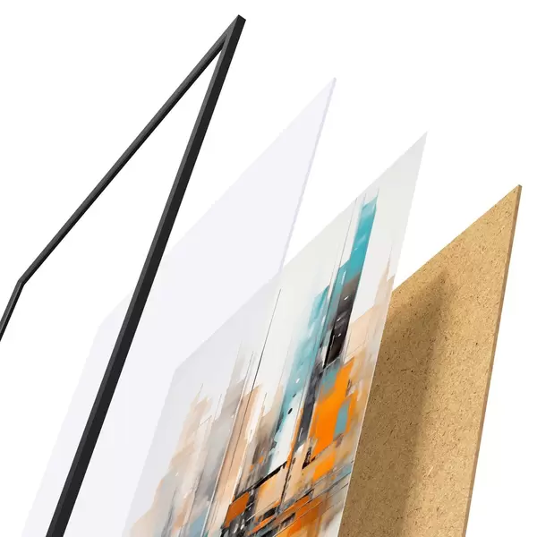 Plakat składa się z ramy, pleksi, wydrukowanego obrazu i podkładu z płyty wiórowej. Plakat można natychmiast zawiesić na ścianie dzięki uchwytom z tyłu.