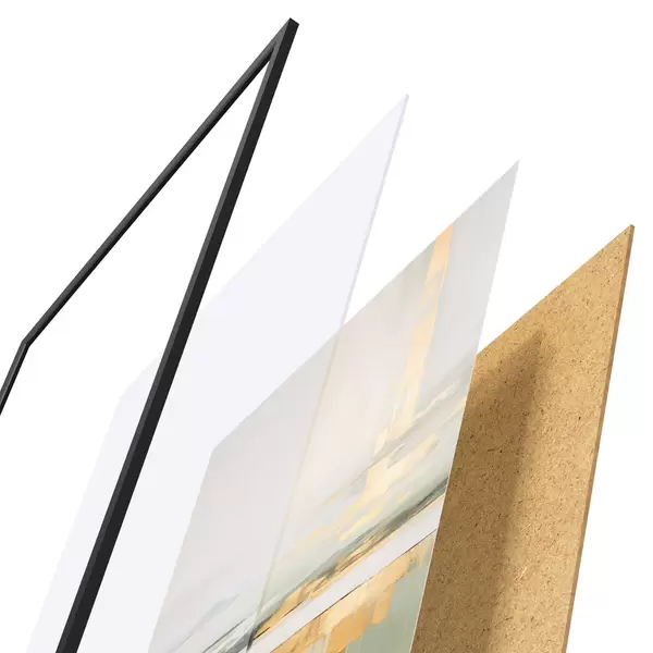 Plakat składa się z ramy, pleksi, wydrukowanego obrazu i podkładu z płyty wiórowej. Plakat można natychmiast zawiesić na ścianie dzięki uchwytom z tyłu.