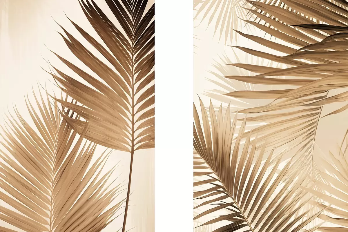 Poster Liście palmowe w brązowych odcieniach, neutralne tło, minimalistyczny styl, naturalne oświetlenie, tropikalny klimat Nr d00880