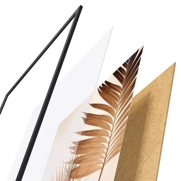 Plakat składa się z ramy, pleksi, wydrukowanego obrazu i podkładu z płyty wiórowej. Plakat można natychmiast zawiesić na ścianie dzięki uchwytom z tyłu.