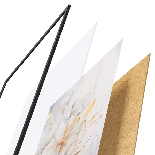 Plakat składa się z ramy, pleksi, wydrukowanego obrazu i podkładu z płyty wiórowej. Plakat można natychmiast zawiesić na ścianie dzięki uchwytom z tyłu.