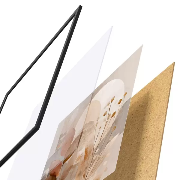 Plakat składa się z ramy, pleksi, wydrukowanego obrazu i podkładu z płyty wiórowej. Plakat można natychmiast zawiesić na ścianie dzięki uchwytom z tyłu.