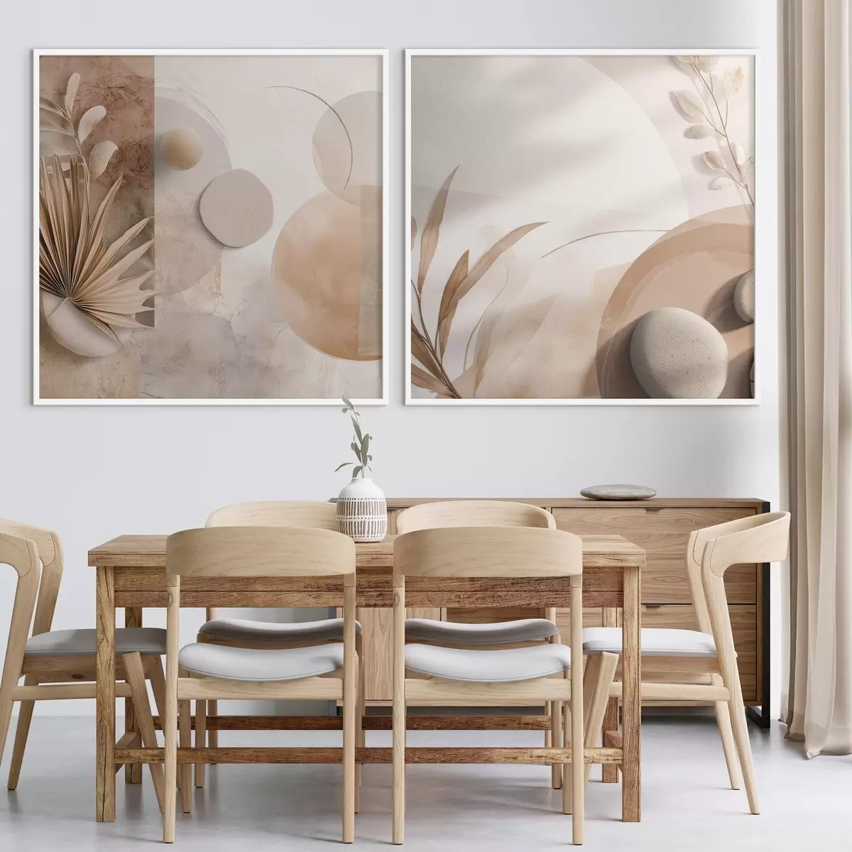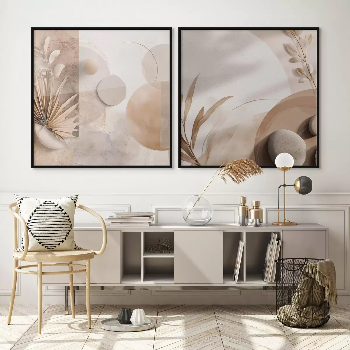 Poster Dwa płótna z wysuszonymi liśćmi i teksturowanymi kształtami Nr d00893