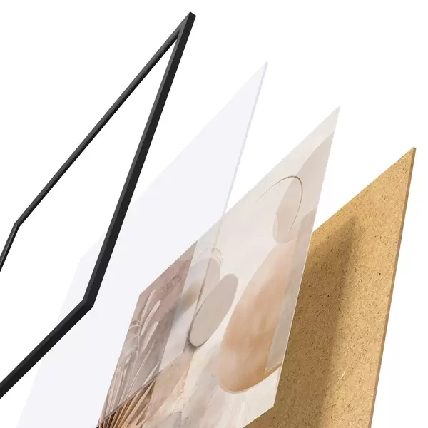 Plakat składa się z ramy, pleksi, wydrukowanego obrazu i podkładu z płyty wiórowej. Plakat można natychmiast zawiesić na ścianie dzięki uchwytom z tyłu.