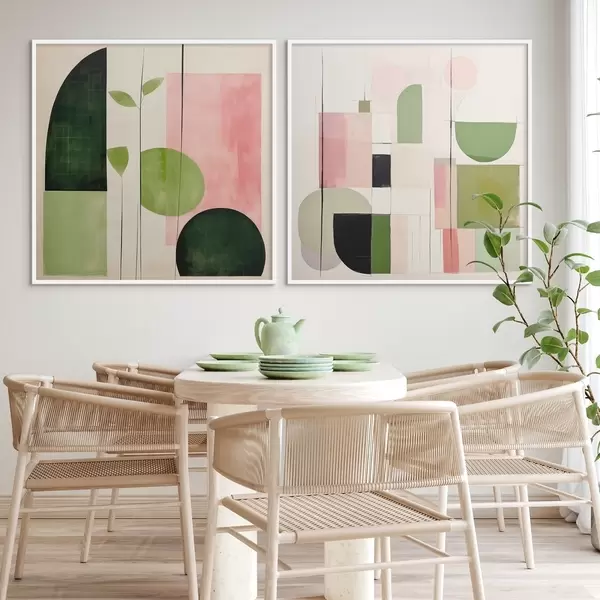 Poster Minimalistyczny dyptyk ze stylizowaną florą i geometrią Nr d00894