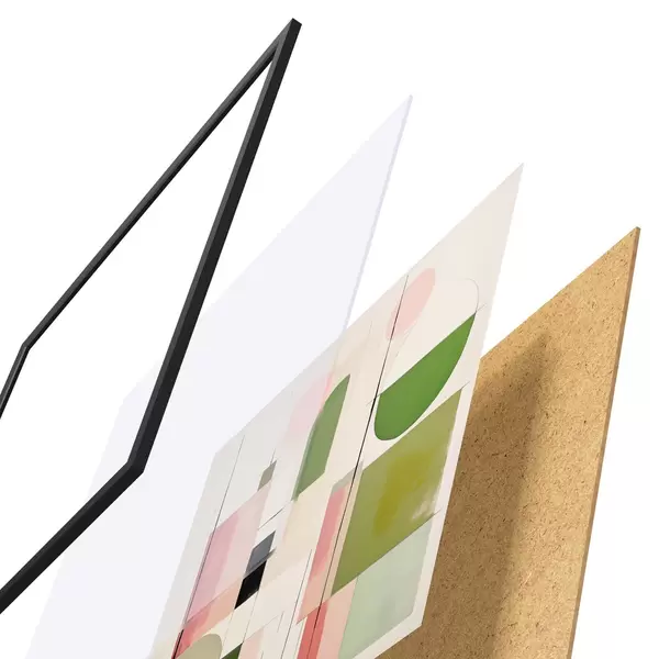 Plakat składa się z ramy, pleksi, wydrukowanego obrazu i podkładu z płyty wiórowej. Plakat można natychmiast zawiesić na ścianie dzięki uchwytom z tyłu.