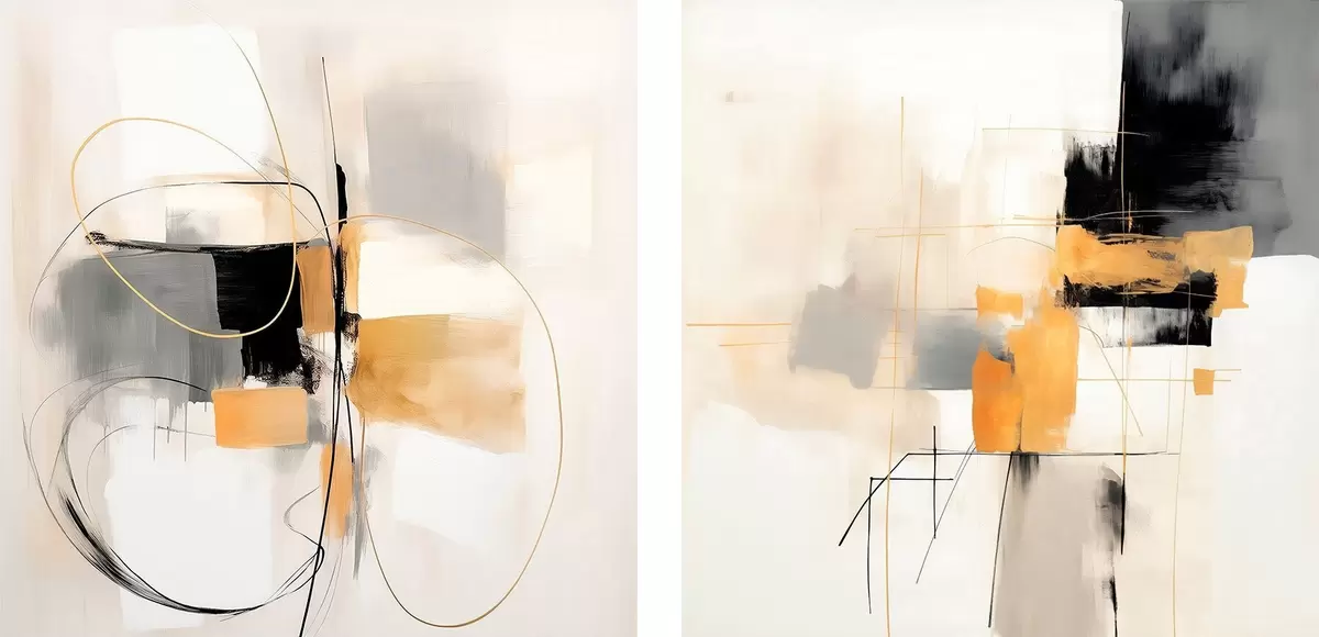 Plakat Geometria abstrakcyjna, ochra, szarość i czerń d00899
