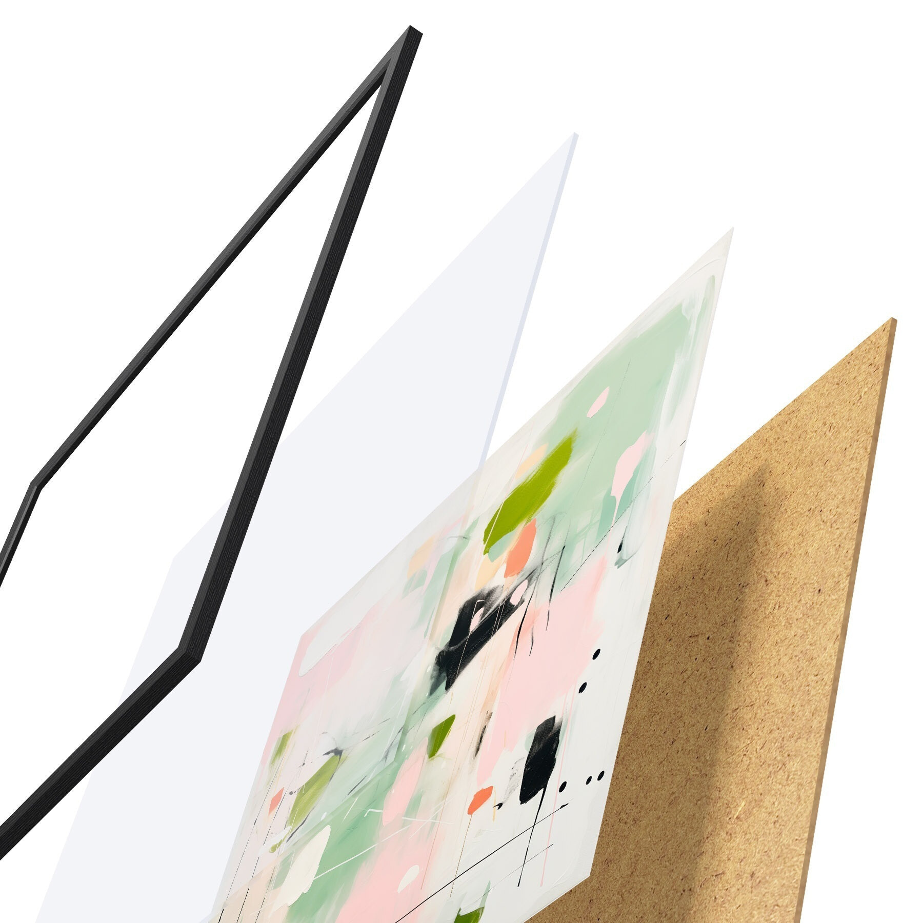 Plakat składa się z ramy, pleksi, wydrukowanego obrazu i podkładu z płyty wiórowej. Plakat można natychmiast zawiesić na ścianie dzięki uchwytom z tyłu.