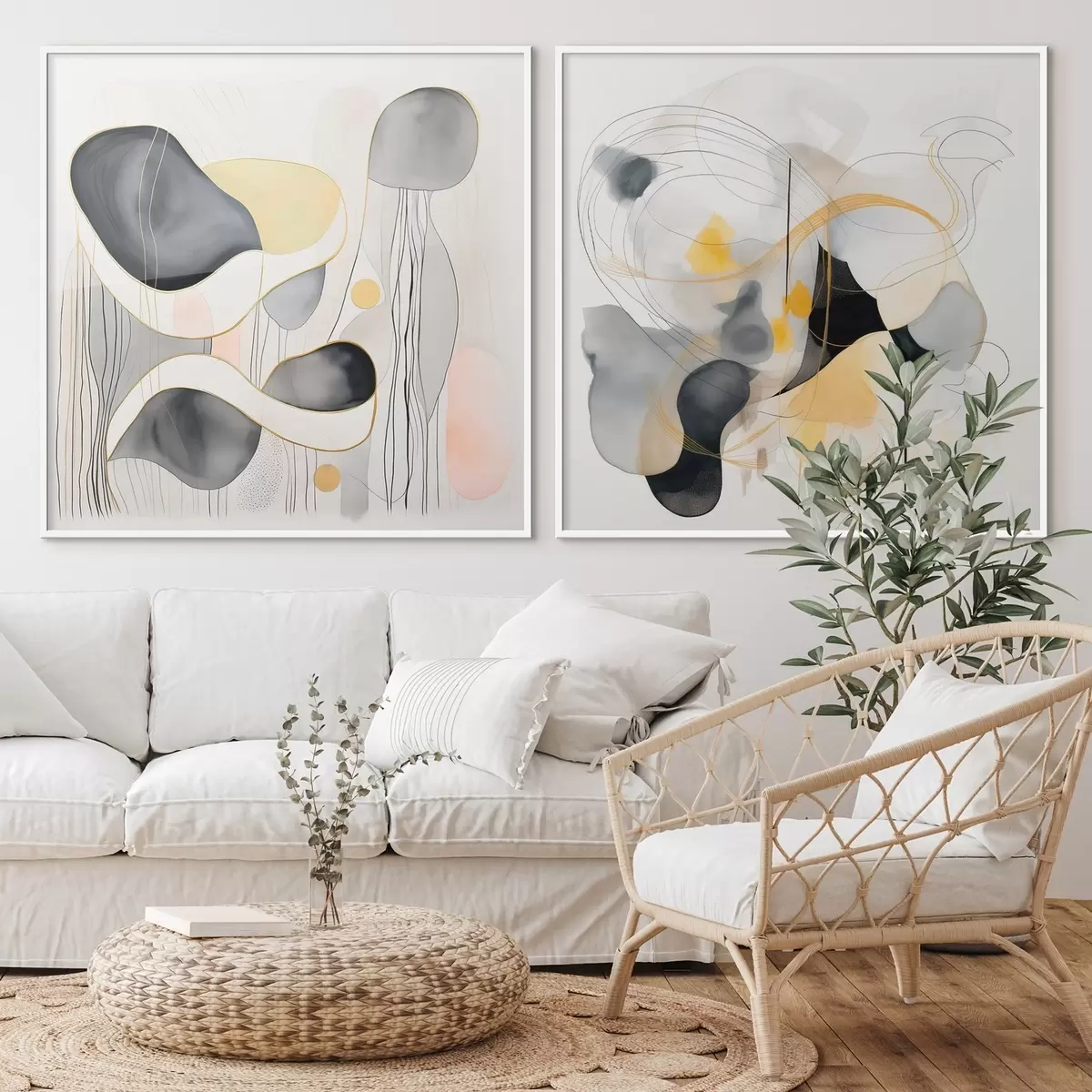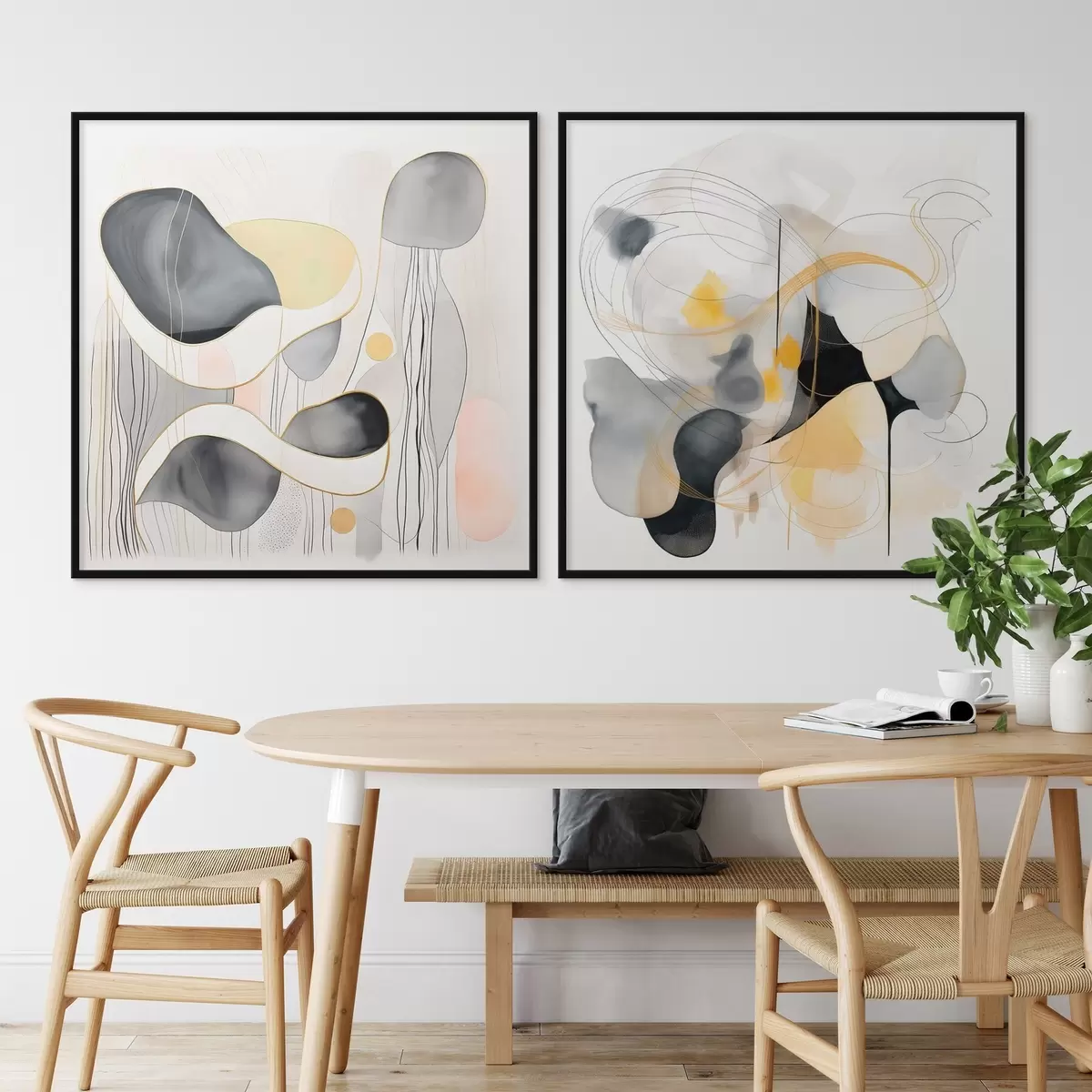 Poster Monochromatyczny i żółty akcent w stylu abstrakcyjnym Nr d00905