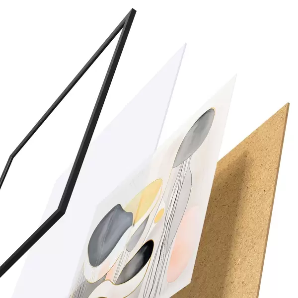 Plakat składa się z ramy, pleksi, wydrukowanego obrazu i podkładu z płyty wiórowej. Plakat można natychmiast zawiesić na ścianie dzięki uchwytom z tyłu.