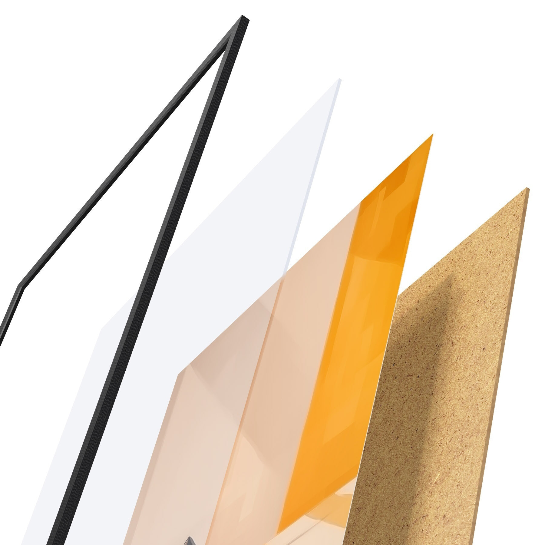 Plakat składa się z ramy, pleksi, wydrukowanego obrazu i podkładu z płyty wiórowej. Plakat można natychmiast zawiesić na ścianie dzięki uchwytom z tyłu.