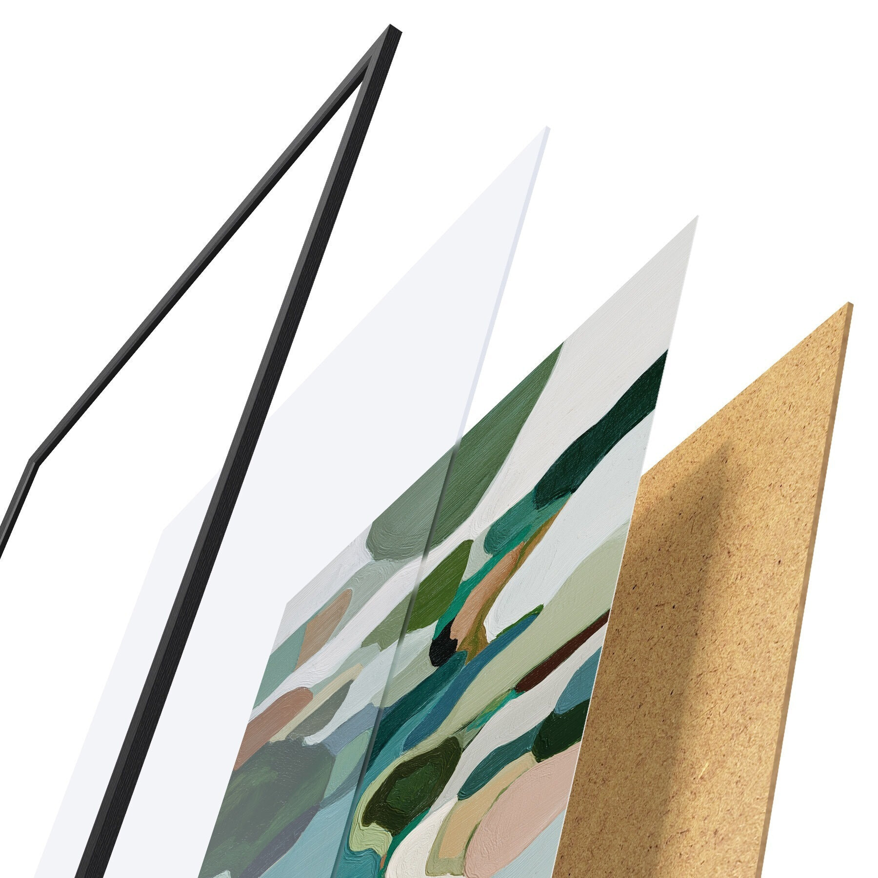 Plakat składa się z ramy, pleksi, wydrukowanego obrazu i podkładu z płyty wiórowej. Plakat można natychmiast zawiesić na ścianie dzięki uchwytom z tyłu.