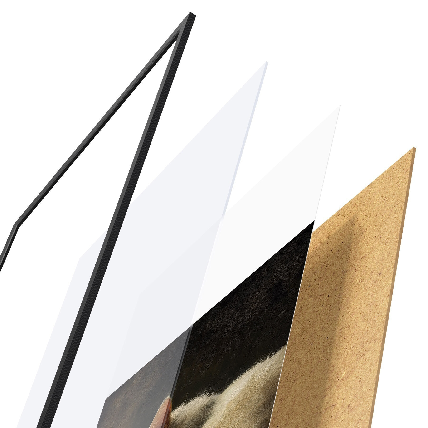 Plakat składa się z ramy, pleksi, wydrukowanego obrazu i podkładu z płyty wiórowej. Plakat można natychmiast zawiesić na ścianie dzięki uchwytom z tyłu.