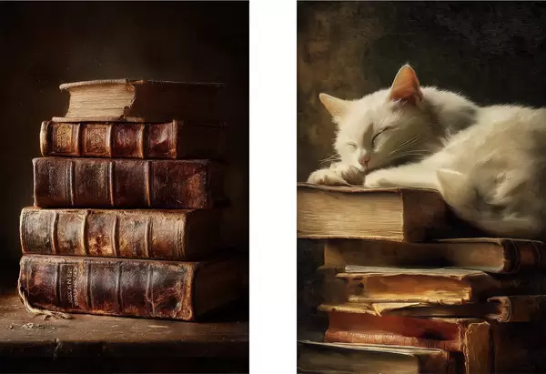 Plakat Kot na książkach d00918