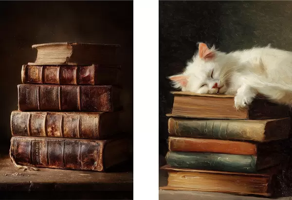 Plakat Kot na książkach d00919