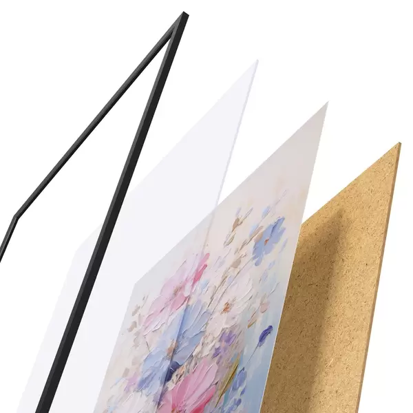 Plakat składa się z ramy, pleksi, wydrukowanego obrazu i podkładu z płyty wiórowej. Plakat można natychmiast zawiesić na ścianie dzięki uchwytom z tyłu.