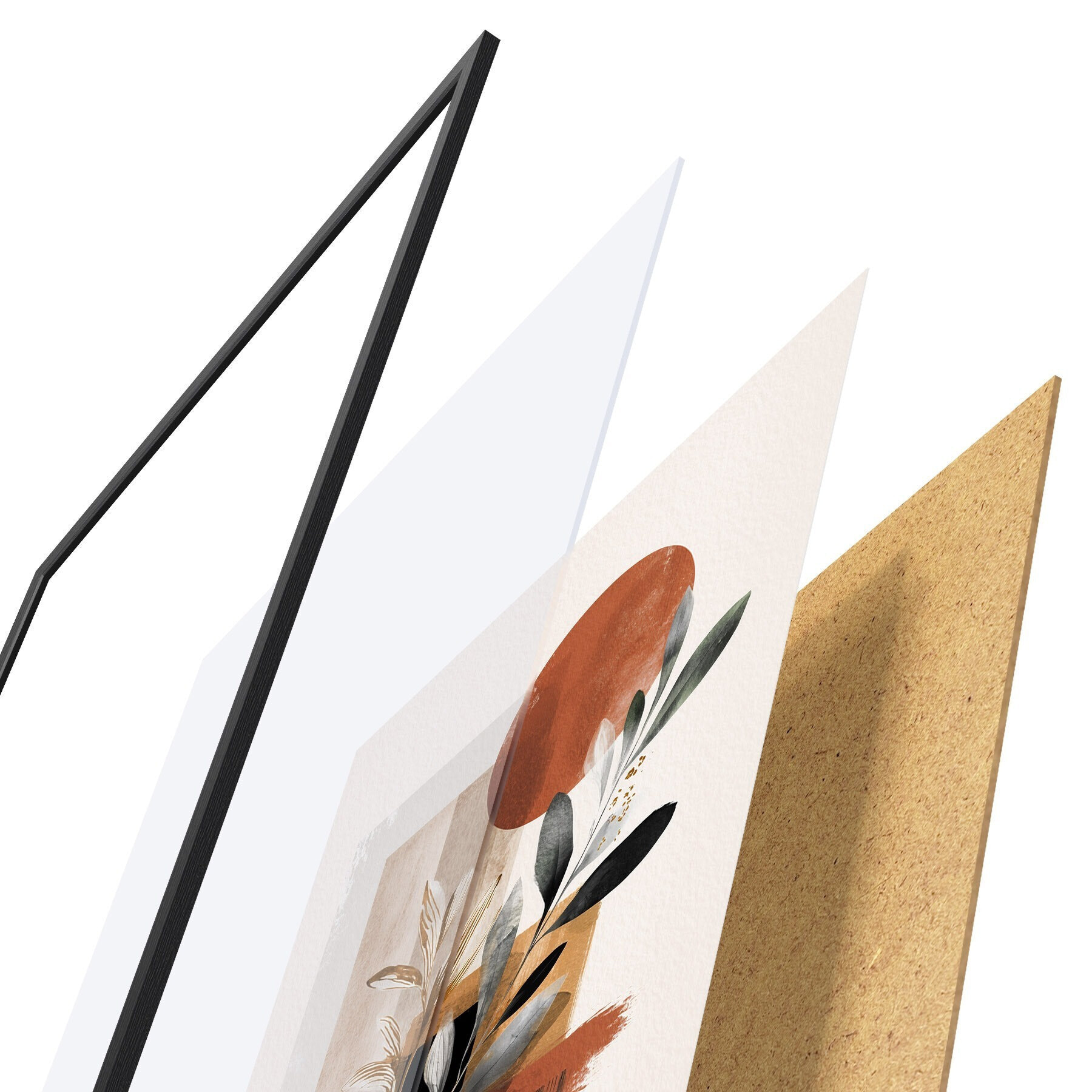 Plakat składa się z ramy, pleksi, wydrukowanego obrazu i podkładu z płyty wiórowej. Plakat można natychmiast zawiesić na ścianie dzięki uchwytom z tyłu.