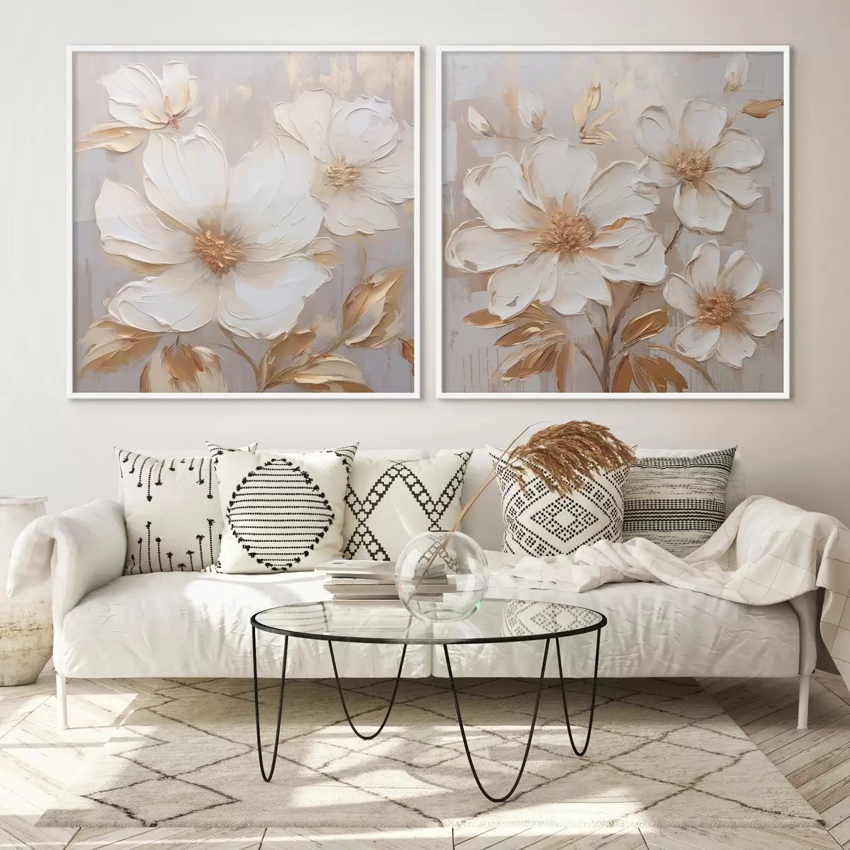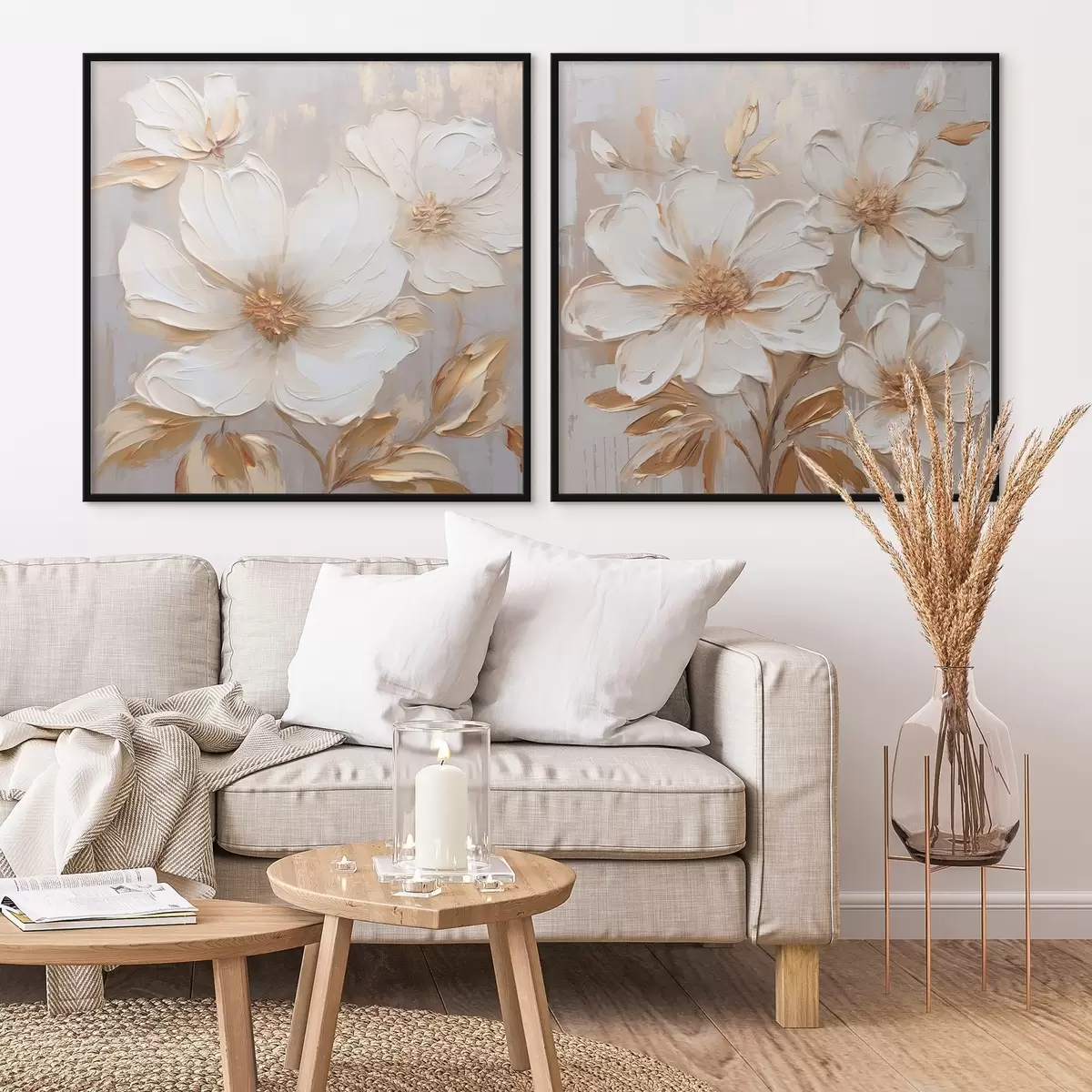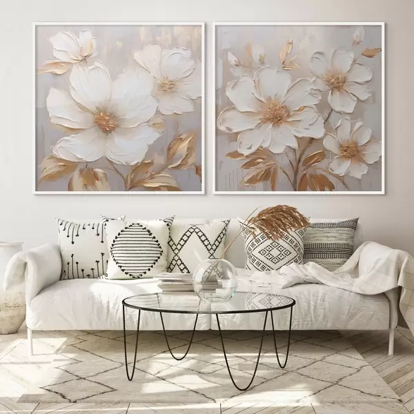 Poster Dyptyk z dużymi kwiatami w jasnych, ciepłych kolorach Nr d00927