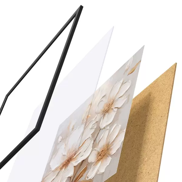 Plakat składa się z ramy, pleksi, wydrukowanego obrazu i podkładu z płyty wiórowej. Plakat można natychmiast zawiesić na ścianie dzięki uchwytom z tyłu.