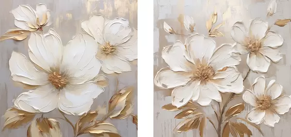 Poster Dyptyk z dużymi kwiatami w jasnych, ciepłych kolorach Nr d00927