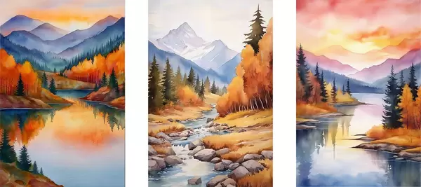 Plakat Jesienny górski krajobraz w ciepłych odcieniach zachodu słońca d00930