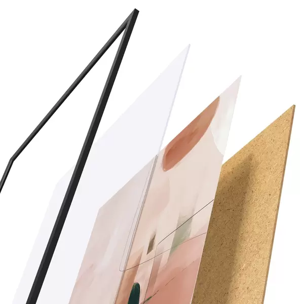 Plakat składa się z ramy, pleksi, wydrukowanego obrazu i podkładu z płyty wiórowej. Plakat można natychmiast zawiesić na ścianie dzięki uchwytom z tyłu.