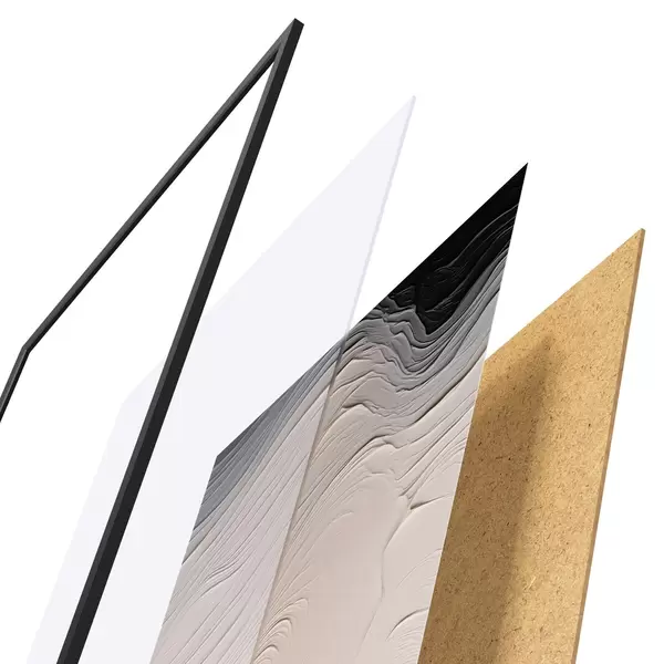Plakat składa się z ramy, pleksi, wydrukowanego obrazu i podkładu z płyty wiórowej. Plakat można natychmiast zawiesić na ścianie dzięki uchwytom z tyłu.