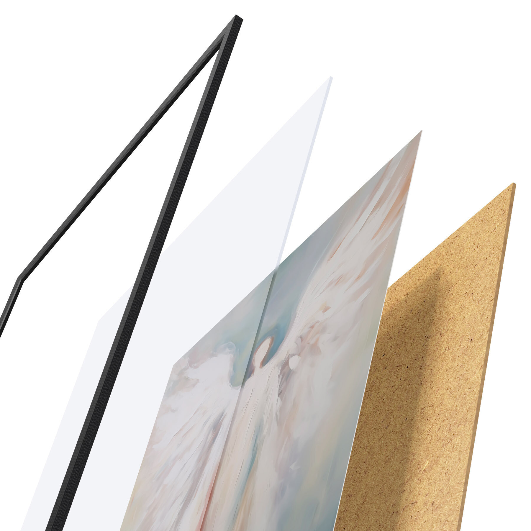 Plakat składa się z ramy, pleksi, wydrukowanego obrazu i podkładu z płyty wiórowej. Plakat można natychmiast zawiesić na ścianie dzięki uchwytom z tyłu.