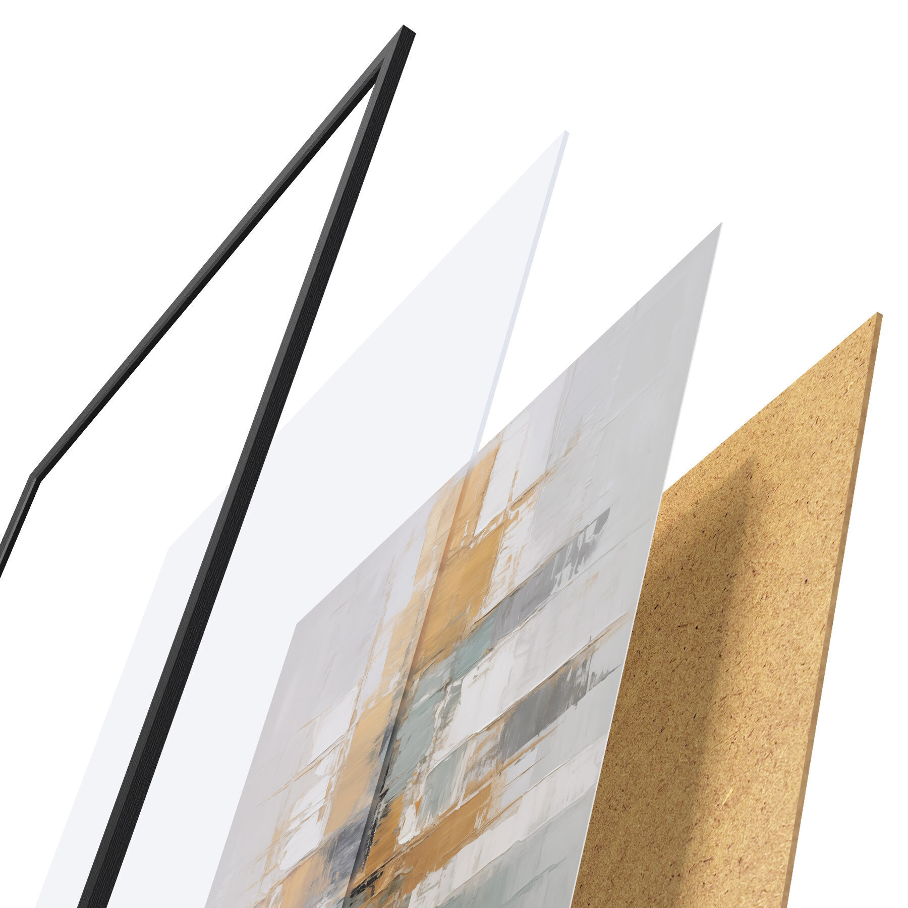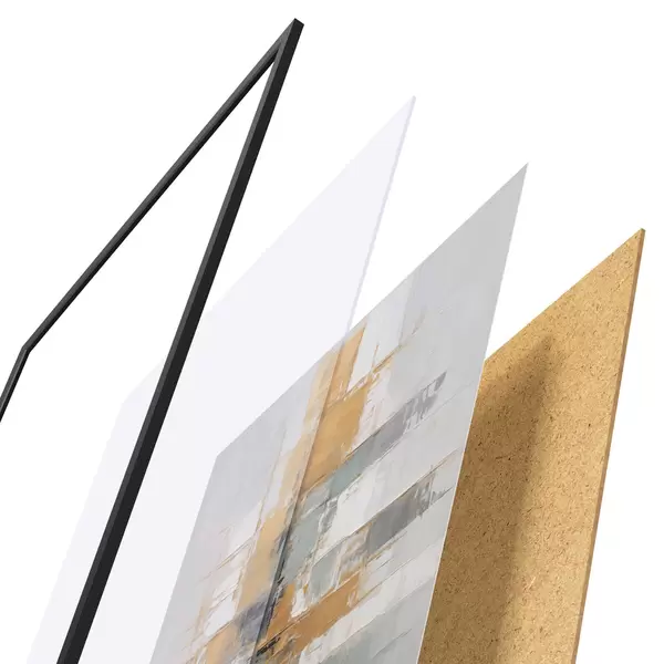 Plakat składa się z ramy, pleksi, wydrukowanego obrazu i podkładu z płyty wiórowej. Plakat można natychmiast zawiesić na ścianie dzięki uchwytom z tyłu.