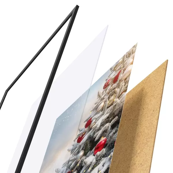 Plakat składa się z ramy, pleksi, wydrukowanego obrazu i podkładu z płyty wiórowej. Plakat można natychmiast zawiesić na ścianie dzięki uchwytom z tyłu.
