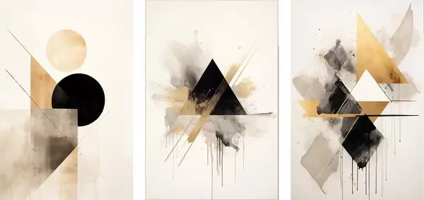 Poster Geometryczne trójkąty z plamami atramentu, czarne i ochrowe Nr d00963
