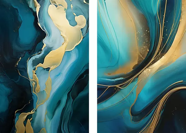 Plakat Turkusowy płynny abstrakcyjny wzór z ciepłymi metalicznymi strumieniami d00965