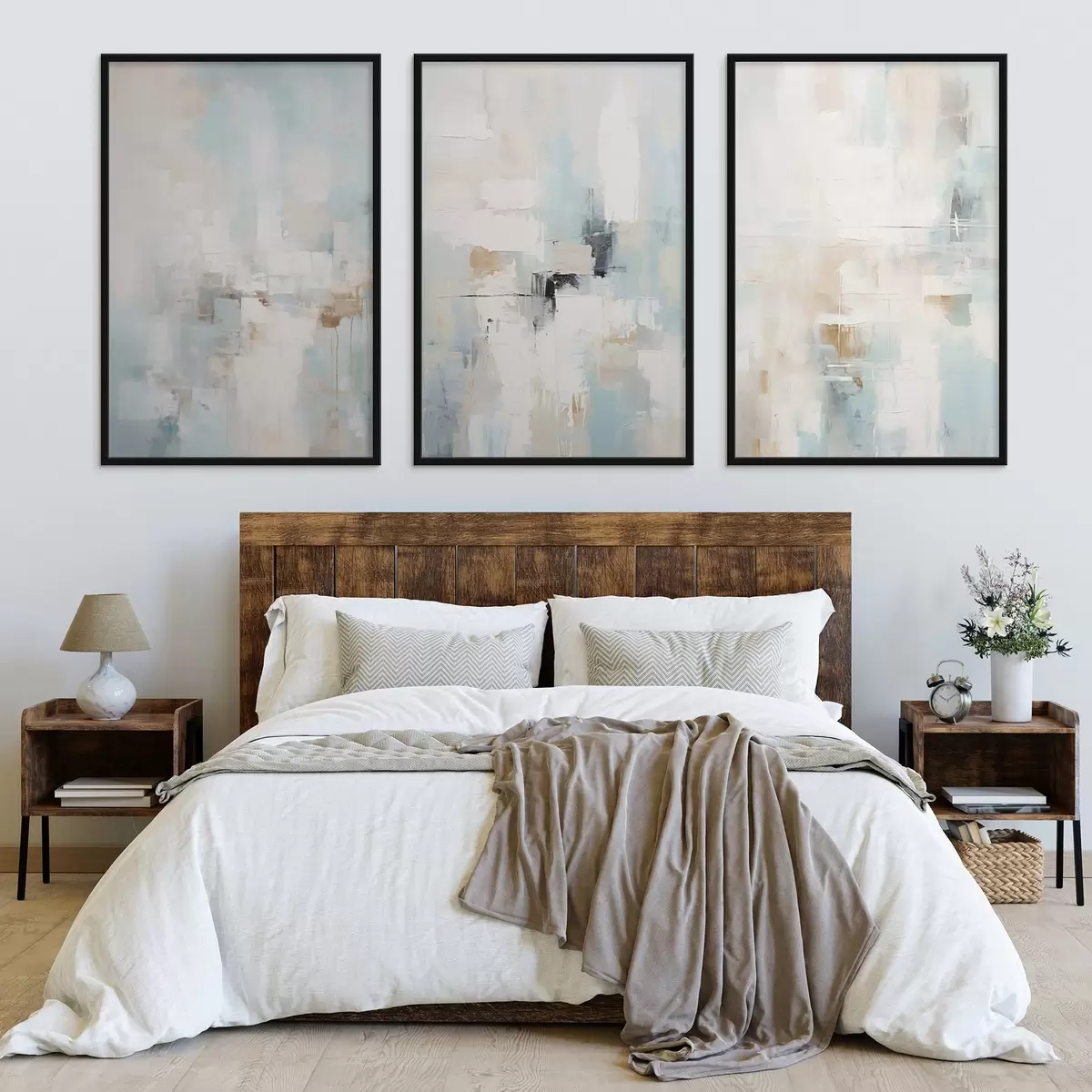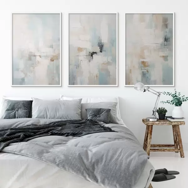 Poster Jasna, abstrakcyjna paleta: biel, beż i jasnoniebieski Nr d00966