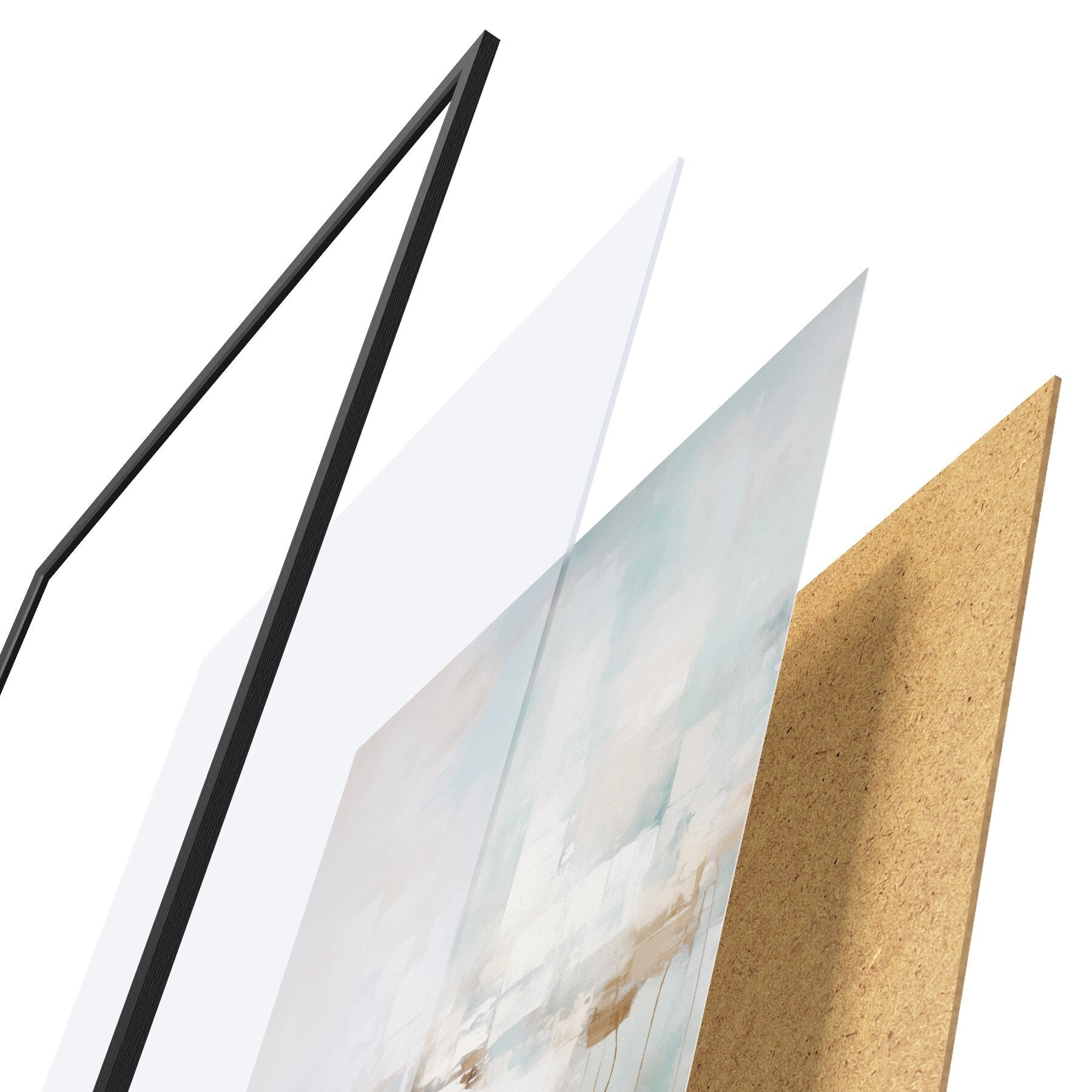 Plakat składa się z ramy, pleksi, wydrukowanego obrazu i podkładu z płyty wiórowej. Plakat można natychmiast zawiesić na ścianie dzięki uchwytom z tyłu.