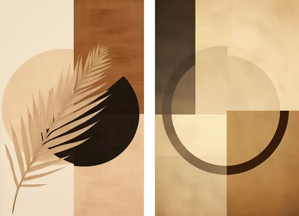 Plakat Geometria w kolorze terakoty i beżu z motywem liści palmowych d00968