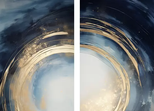 Poster Okrągły wzór w kolorze granatowym z metalicznymi łukami Nr d00969