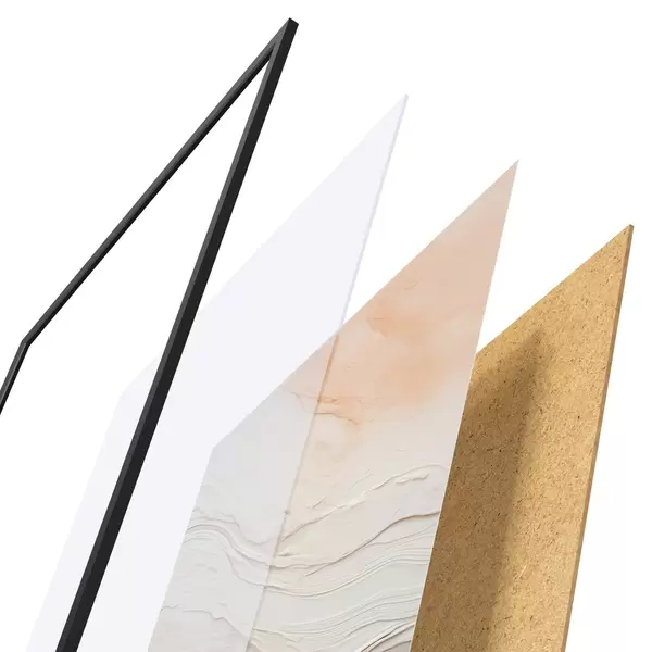 Plakat składa się z ramy, pleksi, wydrukowanego obrazu i podkładu z płyty wiórowej. Plakat można natychmiast zawiesić na ścianie dzięki uchwytom z tyłu.