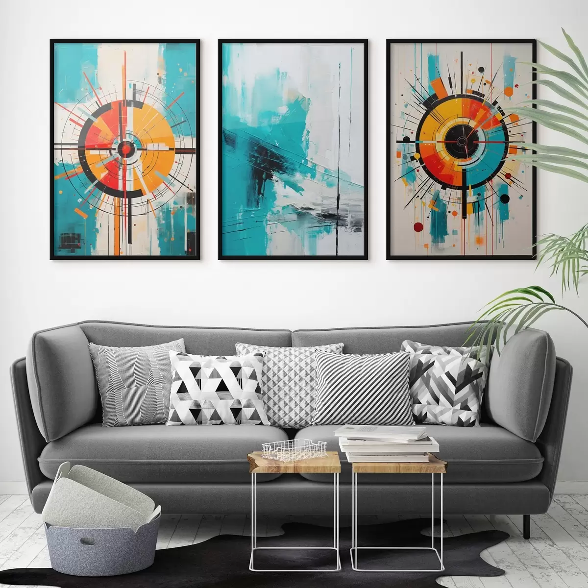 Poster Promieniowy abstrakcyjny wzór z turkusowymi i pomarańczowymi plamami Nr d00973
