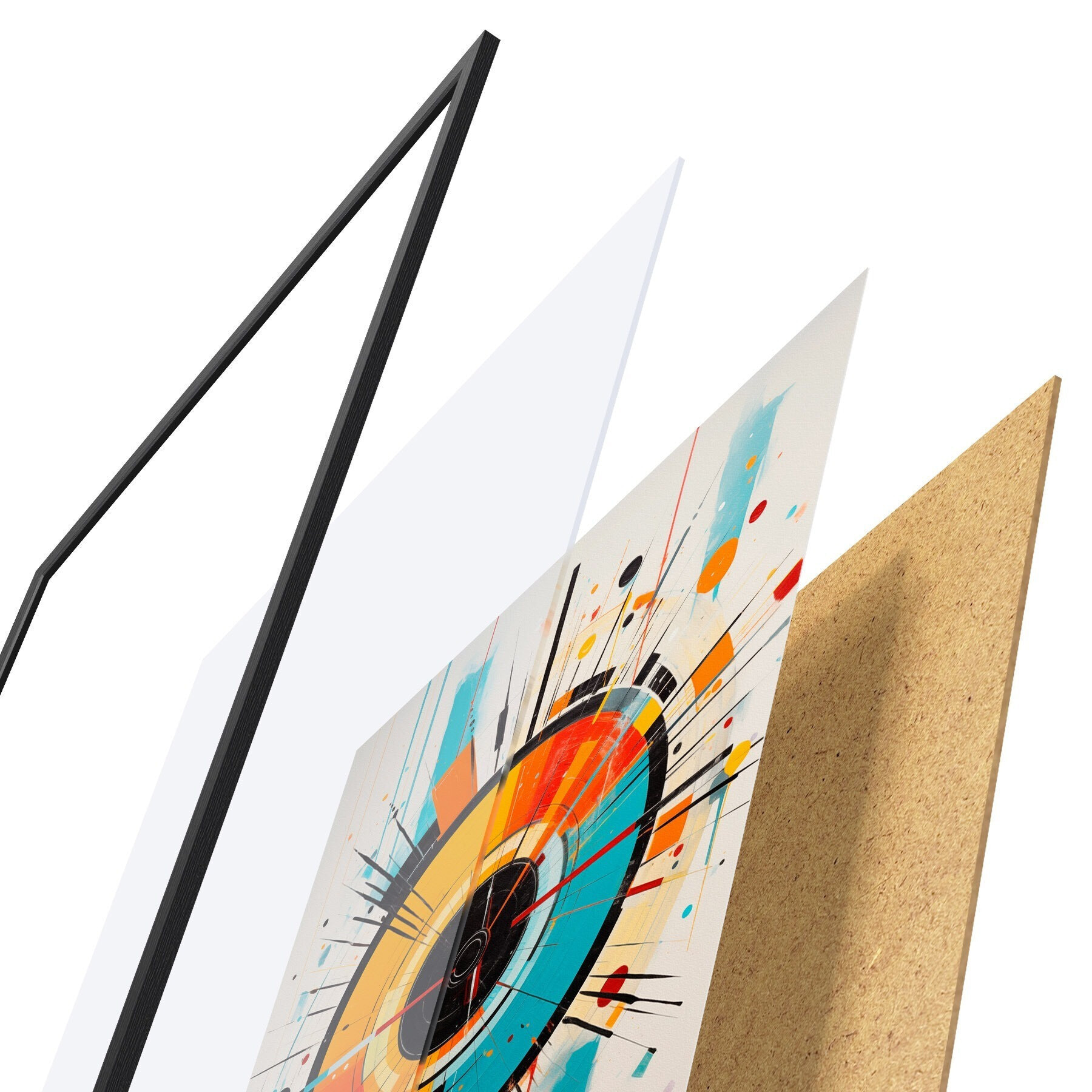 Plakat składa się z ramy, pleksi, wydrukowanego obrazu i podkładu z płyty wiórowej. Plakat można natychmiast zawiesić na ścianie dzięki uchwytom z tyłu.
