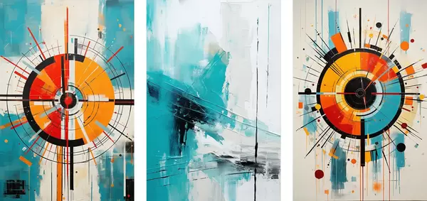 Plakat Promieniowy abstrakcyjny wzór z turkusowymi i pomarańczowymi plamami d00973