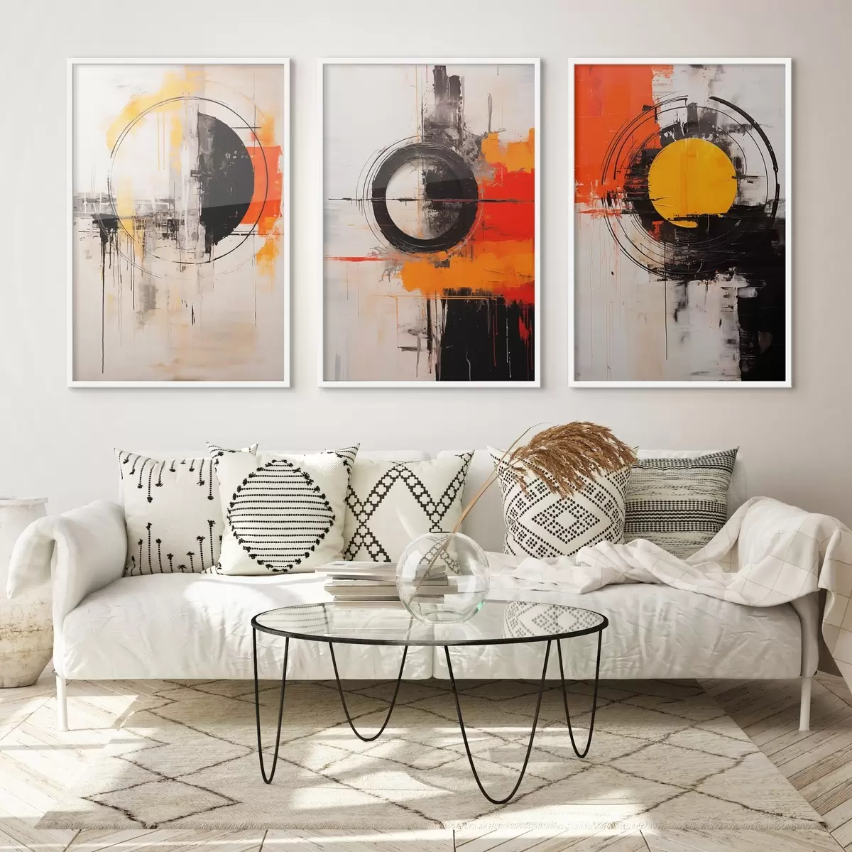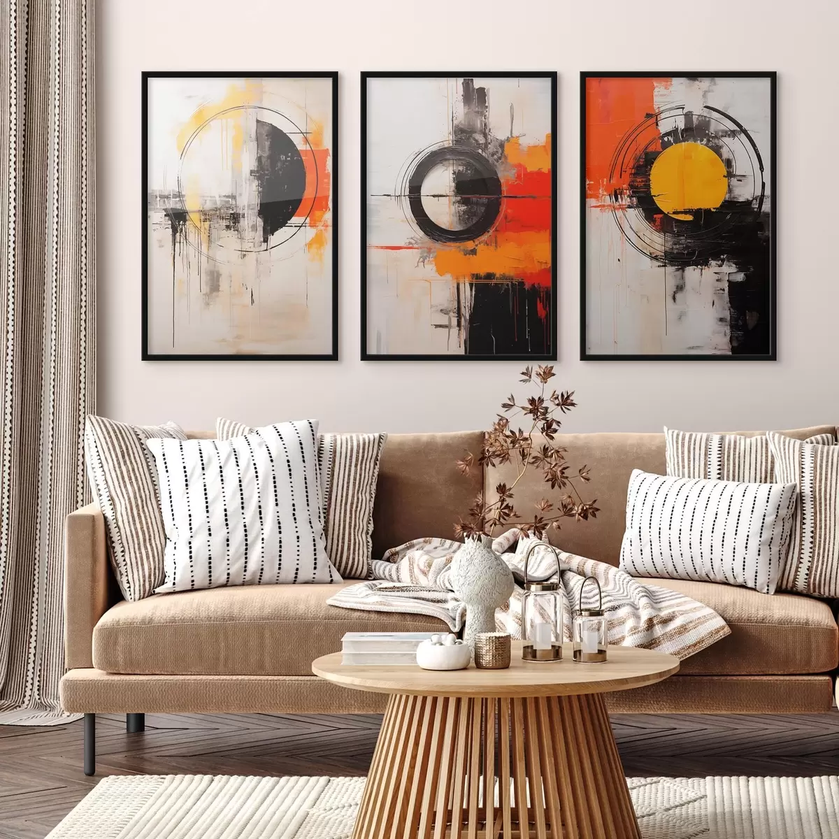 Poster Teksturowane koła i odważne pociągnięcia pędzlem w kolorach czarnym, ochry i pomarańczowym. Nr d00974