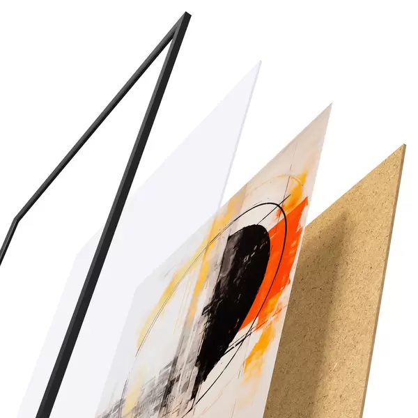 Plakat składa się z ramy, pleksi, wydrukowanego obrazu i podkładu z płyty wiórowej. Plakat można natychmiast zawiesić na ścianie dzięki uchwytom z tyłu.